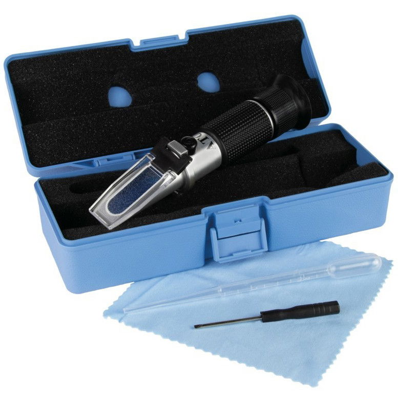 4. lépés, mérés: az 1. lépésben leírtak szerint helyezzen néhány cseppet a mérendő folyadékból a fénytörő prizmára, majd annak fedelét becsukva, és a fénybe nézve leolvashatja a kék és fehér rész találkozásában az adott folyadék fagyáspontját/sűrűségét, stb.